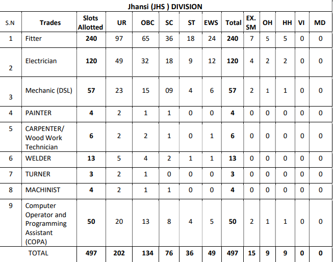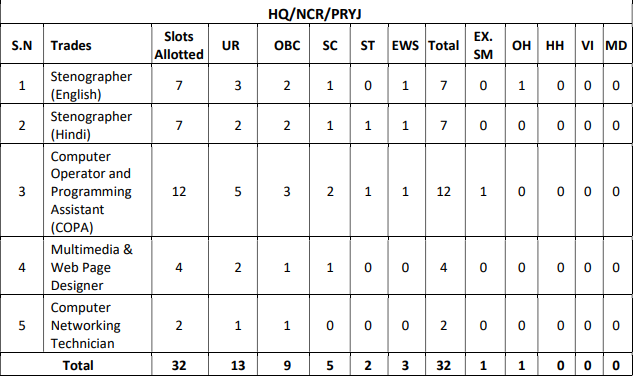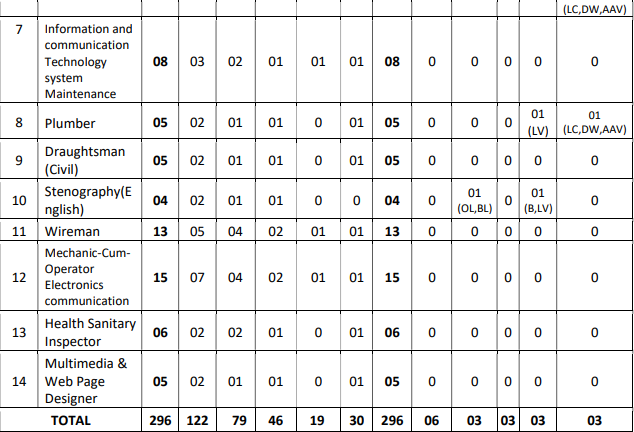S. N. | Designated Trades | ITI Trades | S. N. | Designated Trades | ITI Trades |